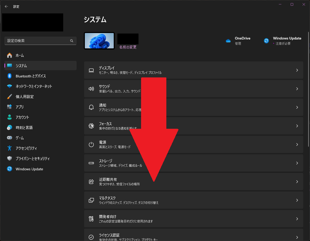設定を開き、左ペイン上から2番目のシステムをクリックします。