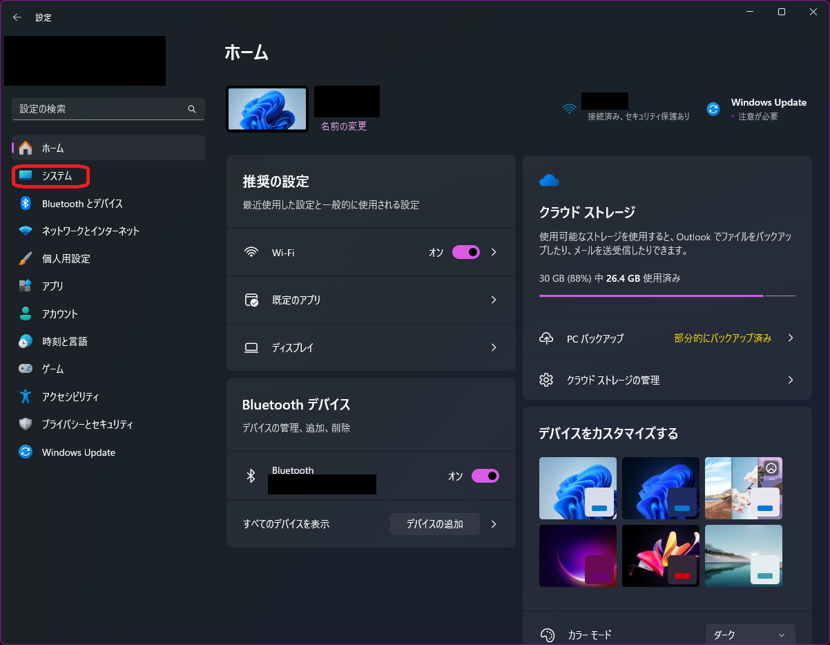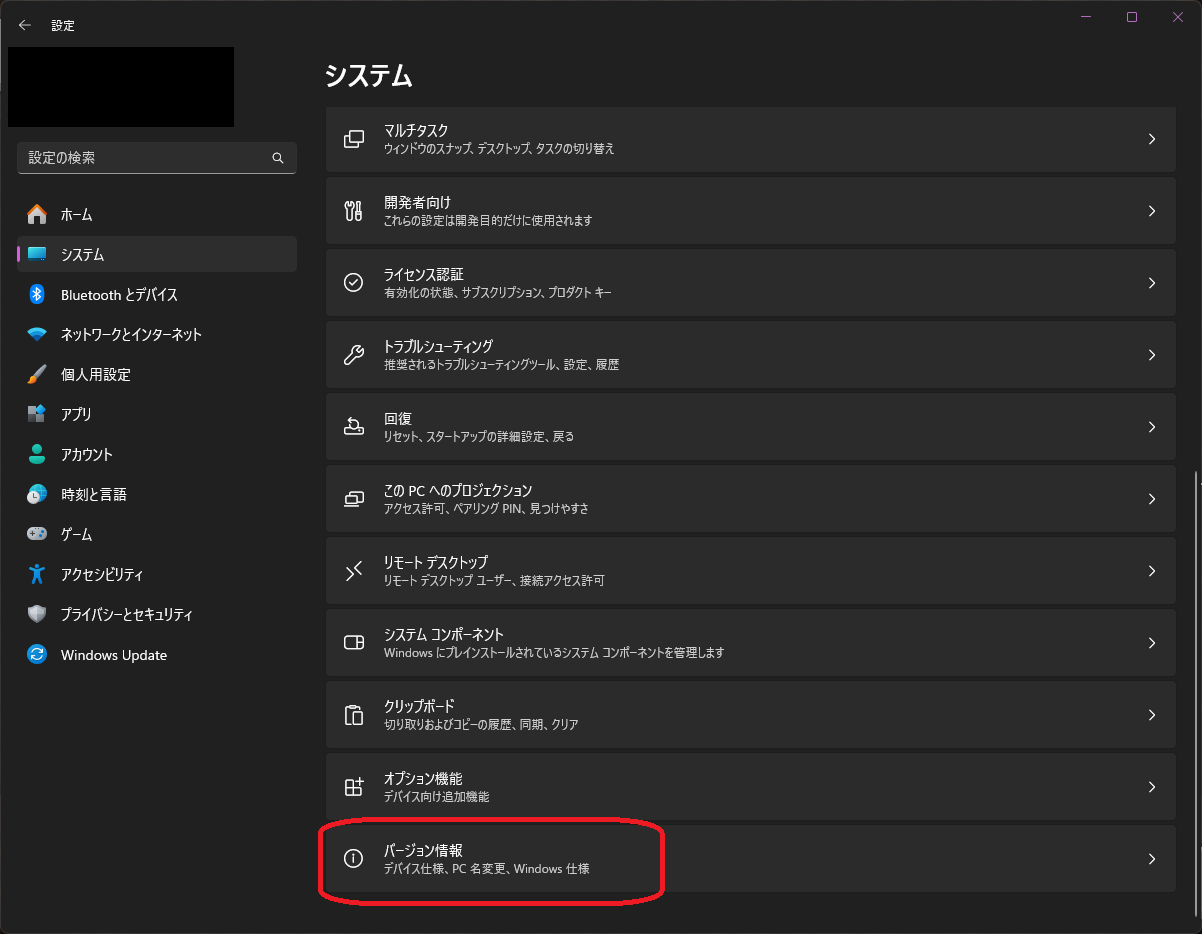 設定を開き、左ペイン上から2番目のシステムをクリックします。